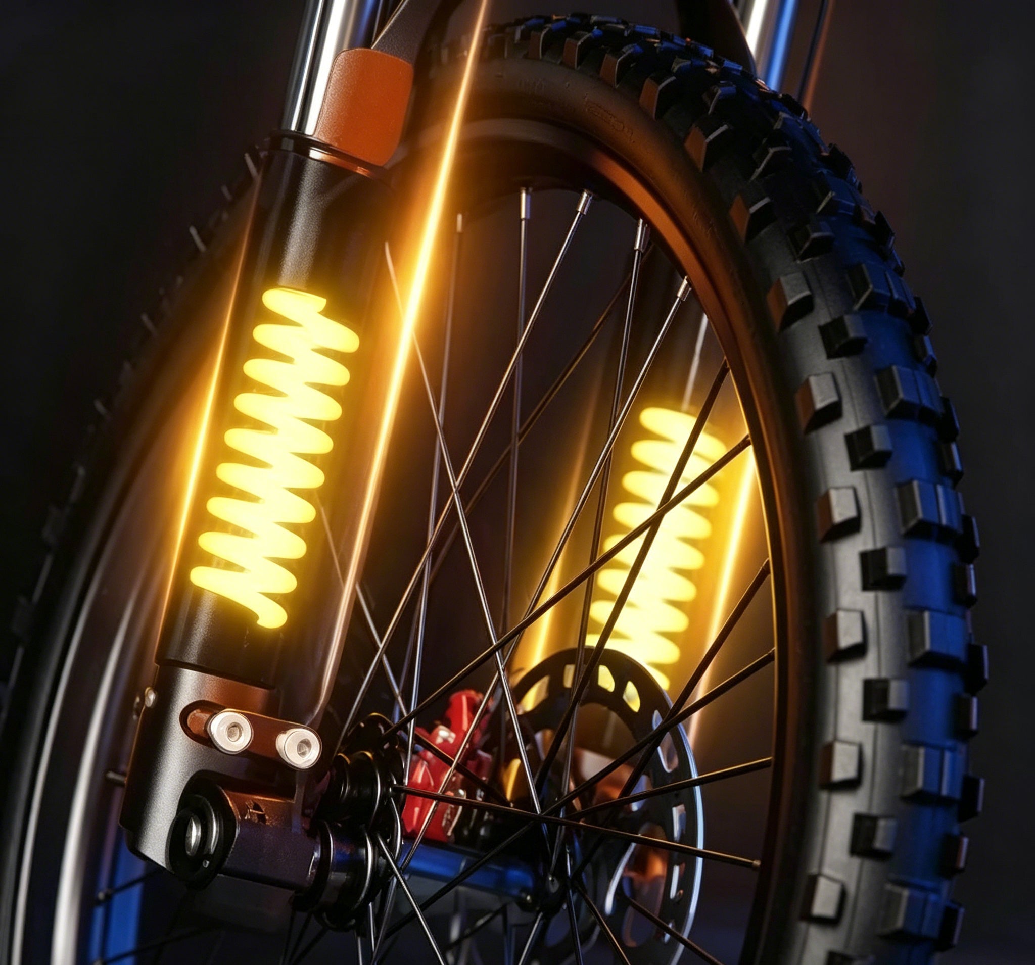 The front fork suspension stays tight and smoothfor precise tracking, while the rear air shock soaksup big bumps and rough surfaces. Keep maximumgrip and razor-sharp control. Total stability, nodeflection.