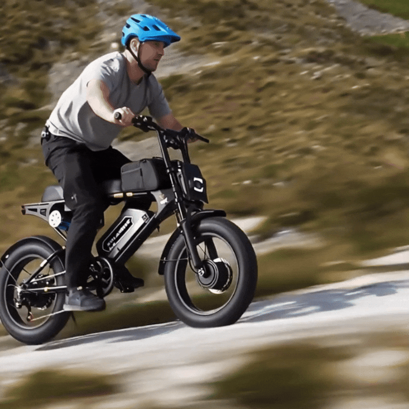 The centerpiece of this E-bik is its premium Off-road LED Light. Unlike standard bicycle headlights, this distinctive, high-intensity front lamp features a futuristic halo design and powerful beam projection, ensuring maximum visibility and safety during night rides or low-light trail conditions.